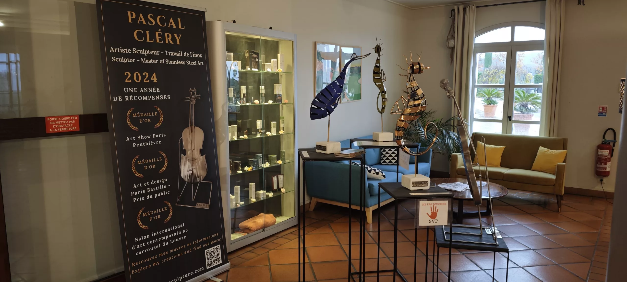 Suite à ce vernissage, les sculptures de Pascal Cléry ont été exposées tout au long du mois de décembre 2025, à la fois dans la cave du domaine ainsi que dans le hall d’entrée de l’hôtel, offrant aux visiteurs et aux clients une immersion permanente dans l’univers de l’artiste.