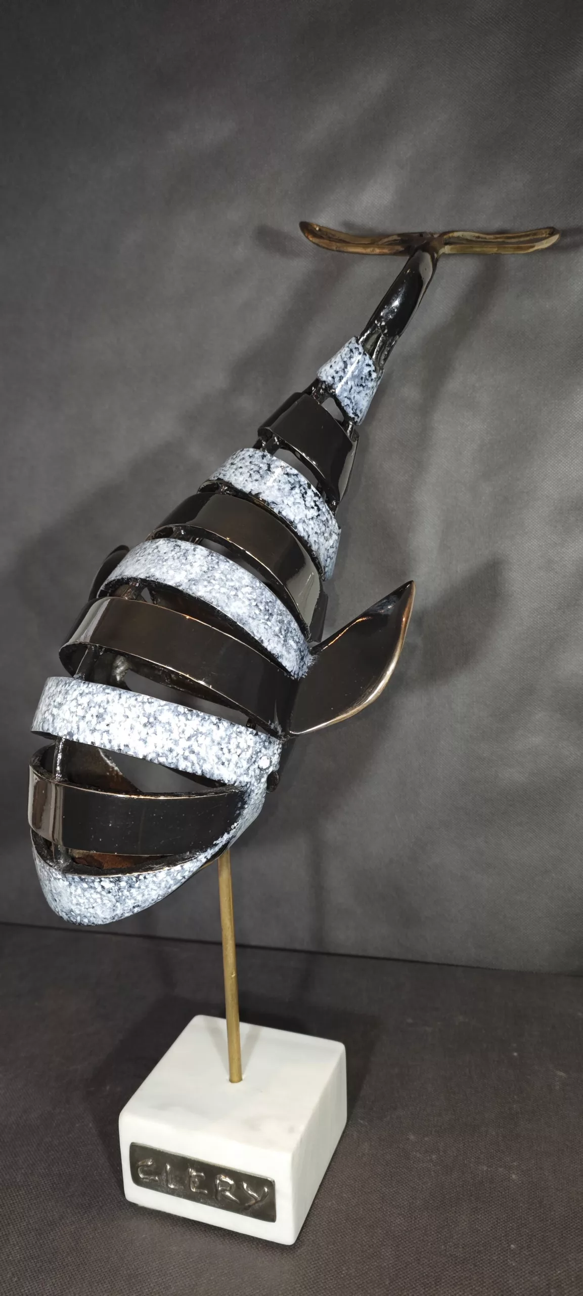 SCULPTURE : Phalaïna bronze patiné et polie Noir et Blanche